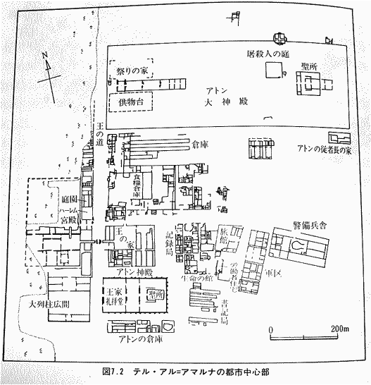 宗教都市と思われがちだが、アテン神自体が"神殿を必要としない神"だったため、実は壮麗な宗教施設などが無い。他の都市と違い、人の住んでいなかった完全なサラ地に一から建設された都市として記録が残っていることが珍しい。