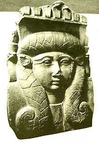 たとえば、第一位の王妃など、高貴な人々しか着けられない、「セレブ御用達ファッション」。それが右図のムト女神の象徴、ハゲワシを意匠にした高位王妃専用かぶりものである。(左が王妃、右が女神) 王妃が頭につけているのがハゲワシの帽子である。